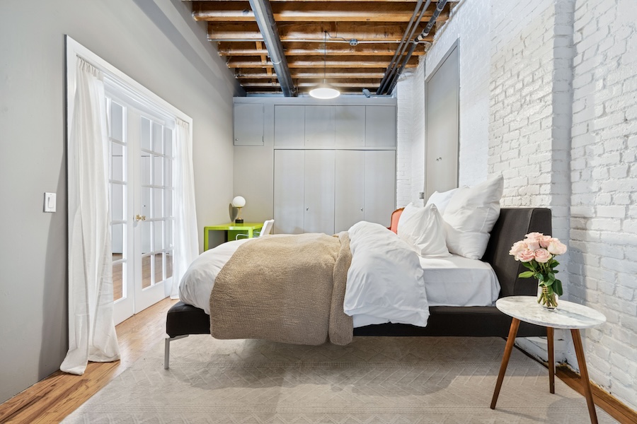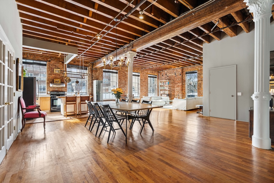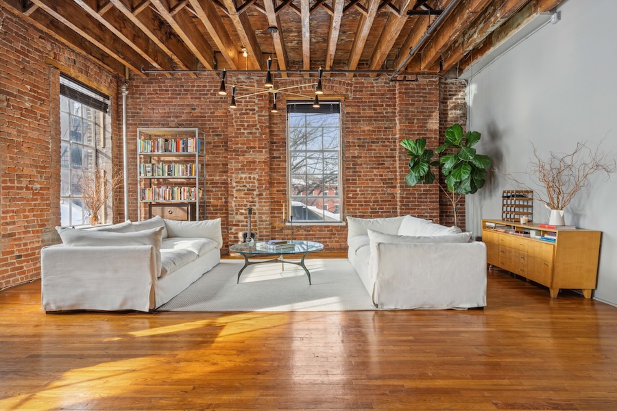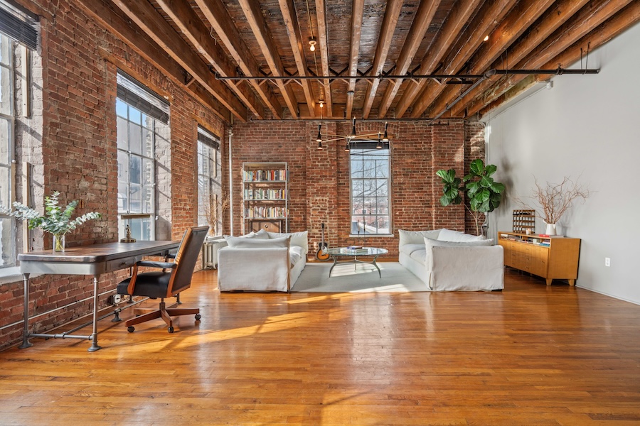 Exposed brick walls, original wood-beamed ceilings, and cast iron columns bring authentic architectural character, while the open layout provides long sightlines and multiple shooting angles. The space is pin-drop quiet, making it especially well suited for interviews and sound-sensitive productions. Large open floor plan with strong visual depth. Seven oversized south-facing windows. Exposed brick, hardwood floors, wood beams, and cast iron columns. Quiet environment suitable for recording.